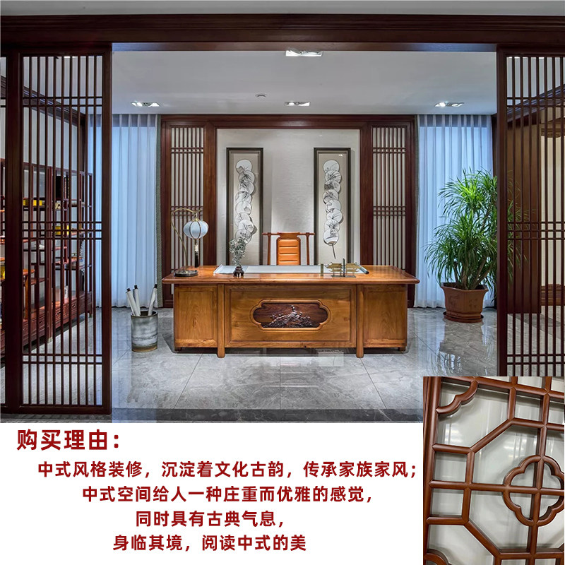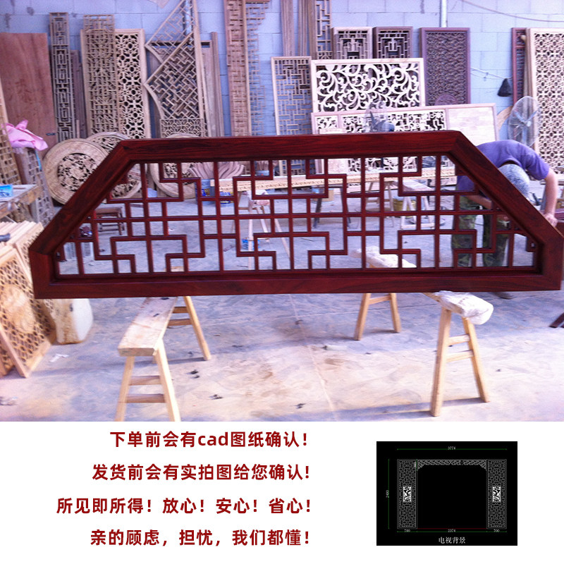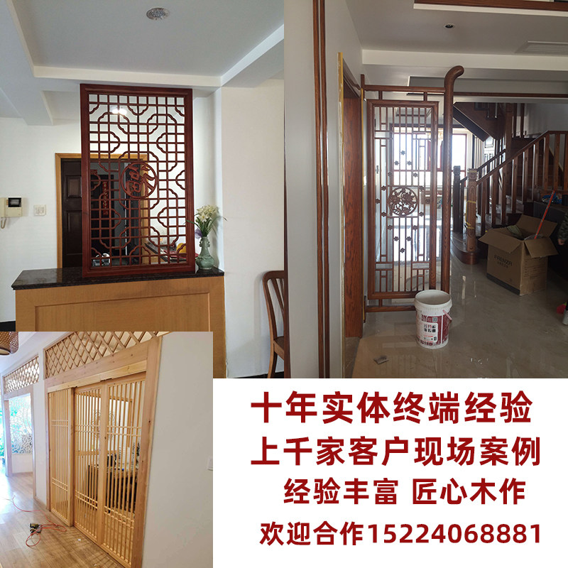 Goods wood carving entry porch partition solid wood lattice sofa background wall hollow new Chinese decoration