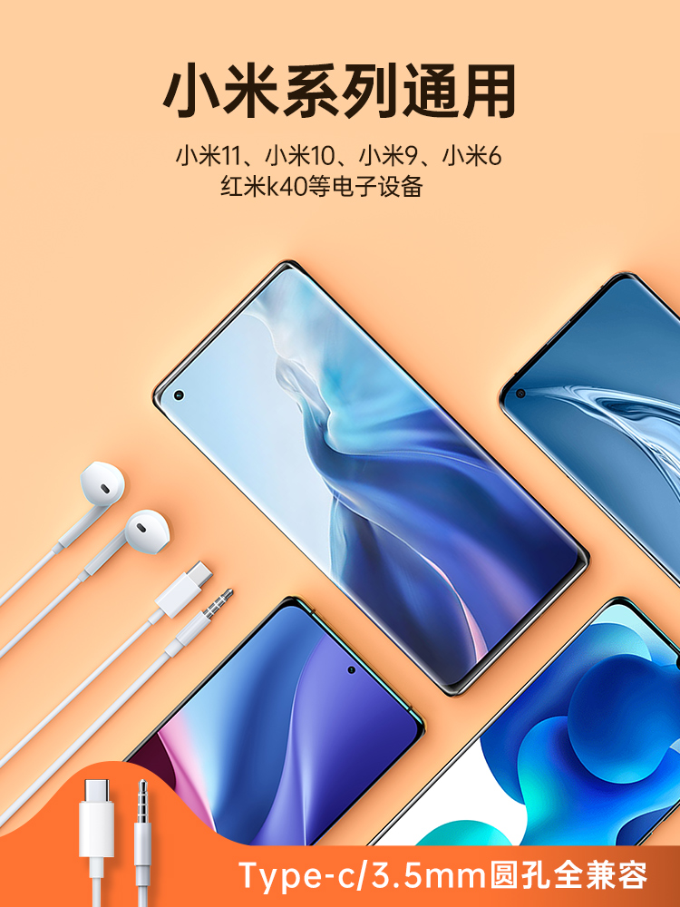 Headphone wired Applicable Xiaomi 9 11 10pro in ear type typec connector k40 red rice 8 original tpc