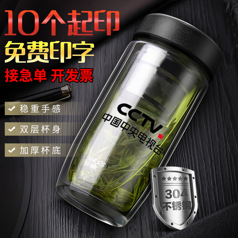 Souvenir custom water cup logo cup custom tea cup printing lettering pattern custom double glass cup