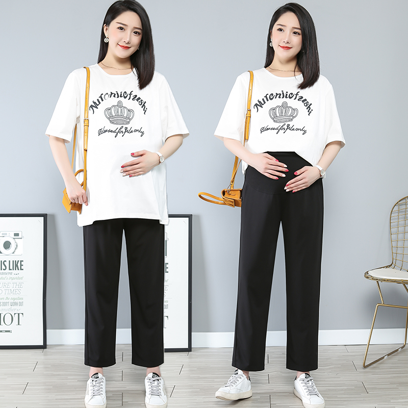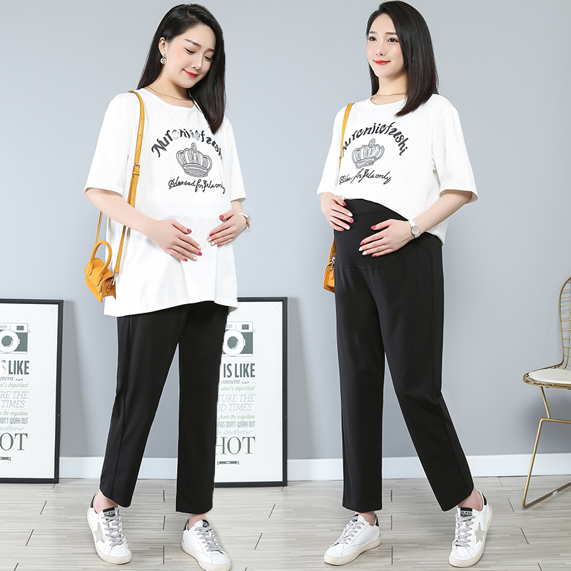 Large size 200 catties pregnant women's pants spring and autumn outer wear eight points nine points high waist support abdomen summer thin fashion bottoming short man