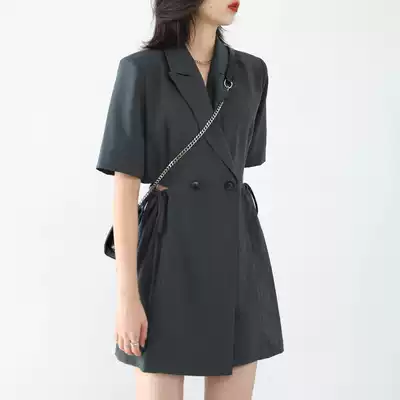 CHICVEN "Mo mirror twins" retro temperament care machine strappy waist V collar short sleeve suit dress summer