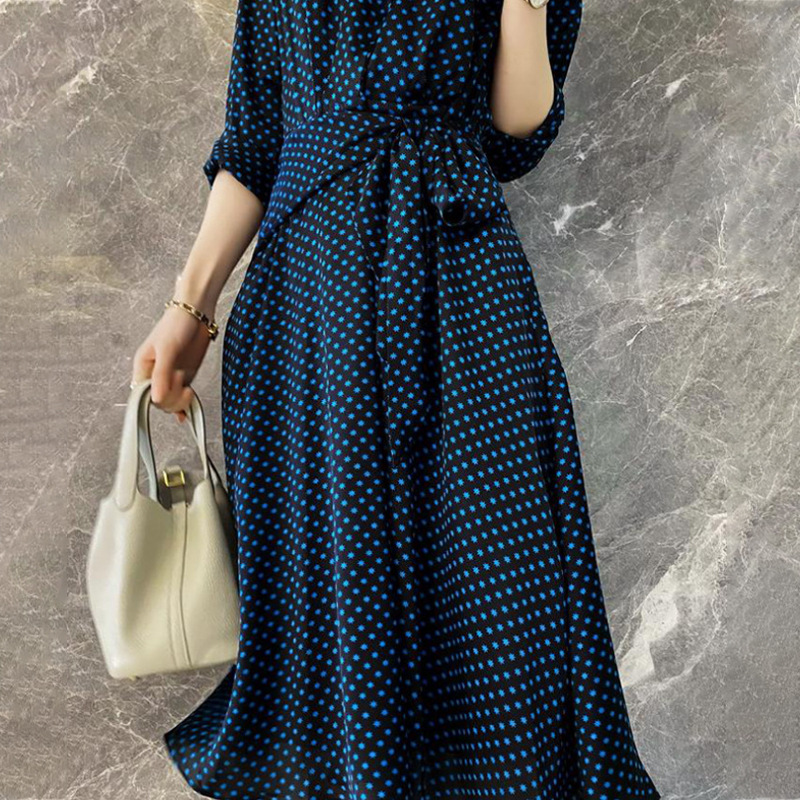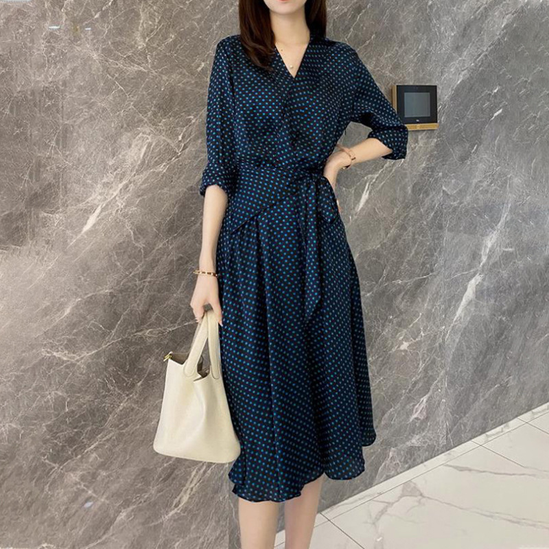Day Ensemble Wave Dot Tea Hysteria Dress children 2021 Summer new retro temperament gentle Wind V collar Long version of the foreign dress