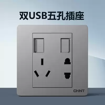 Chint 86 socket switch dark gray high power USB five-hole silver mobile phone fast charging wall panel concealed