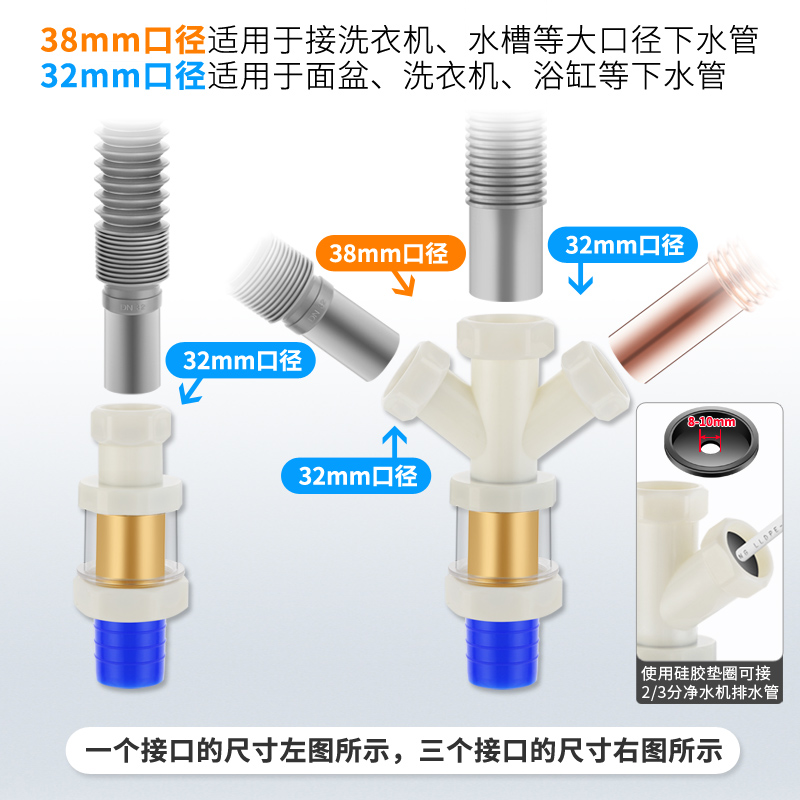 Special joint for washing machine sewer pipe three-way connector PVC drainage pipe Y type three-head-through deodorant anti-spill water floor drain