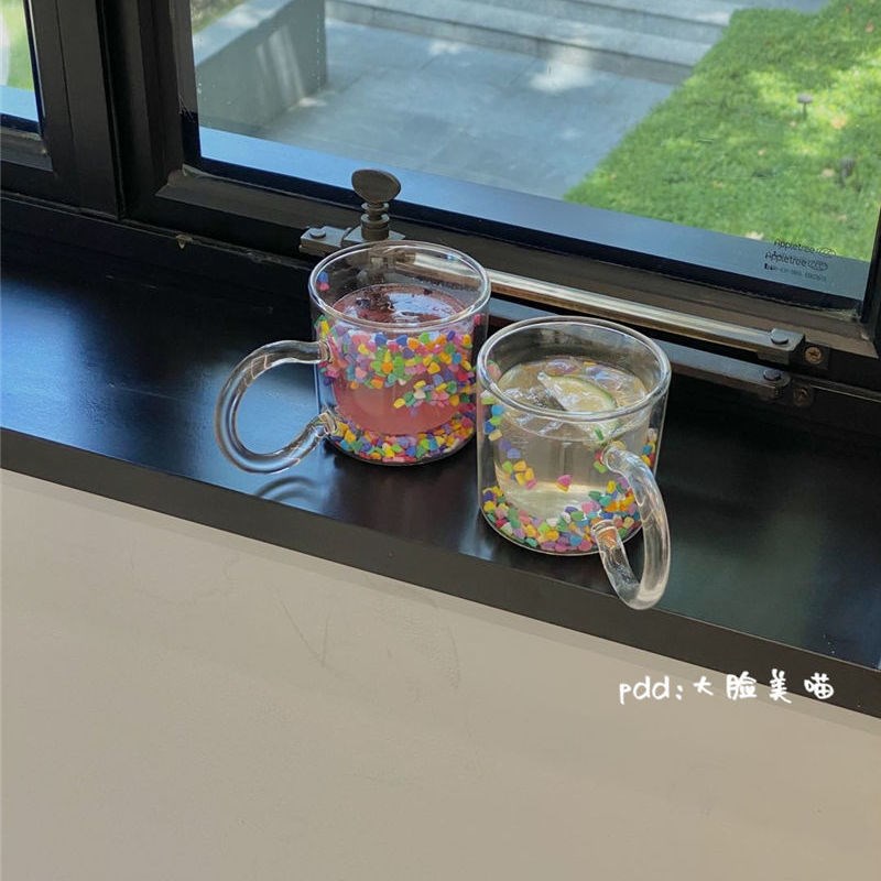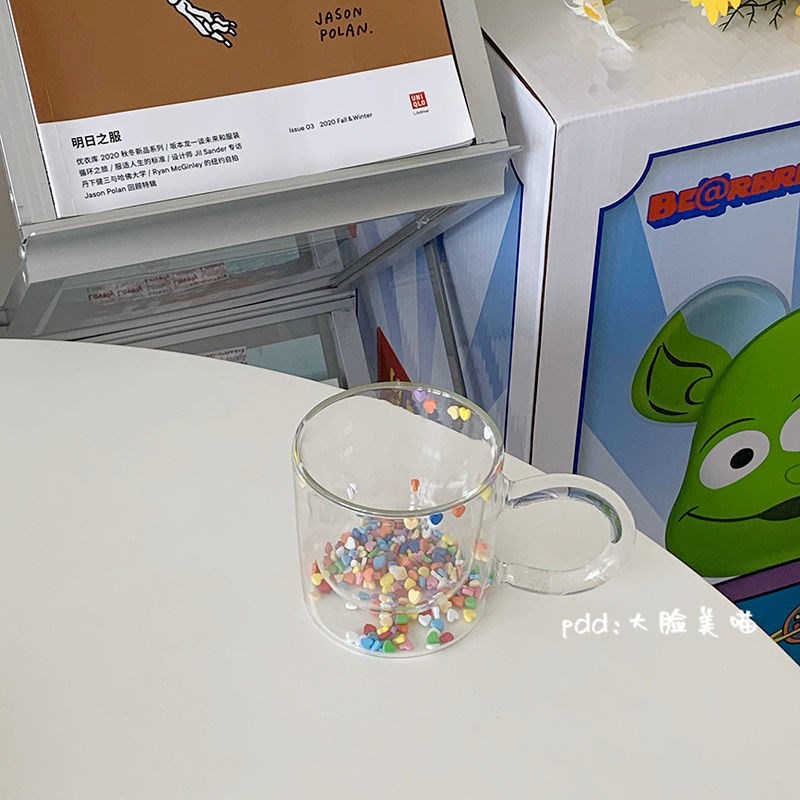 Fairy Bobo Cup Quicksand Love Bobo Double Layer Love Glass Korean Style Shaoxing Transparent Anti-scalding Heat-resistant Water Cup Gift
