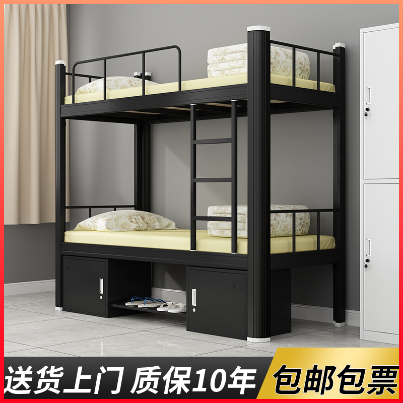 Wrought iron double bed Upper and lower bunk Iron frame bed Two-story high and low bed Student apartment dormitory Steel frame bed thickened and reinforced