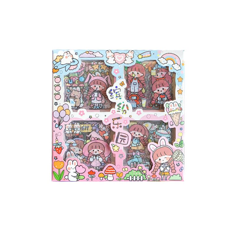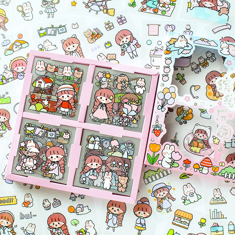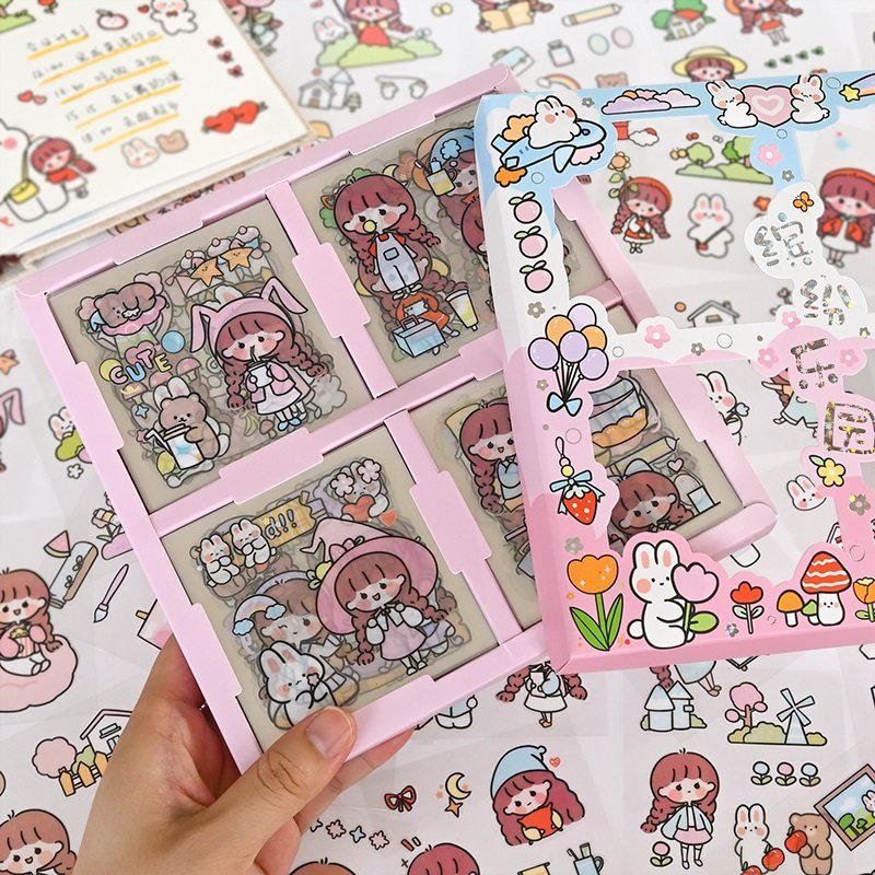 100 muzili hand account stickers set student diy hand account decoration material cute girl heart cartoon character stickers small pattern water cup desktop decoration stickers multi-functional non-repetitive