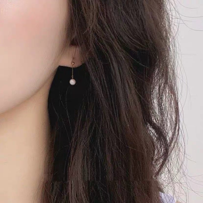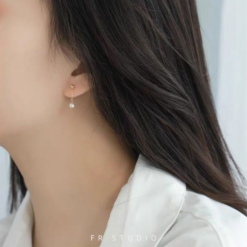 Natural pearl earrings ear clip small earrings with a long version 925 pure silver ear pin 2021 new headless dongle