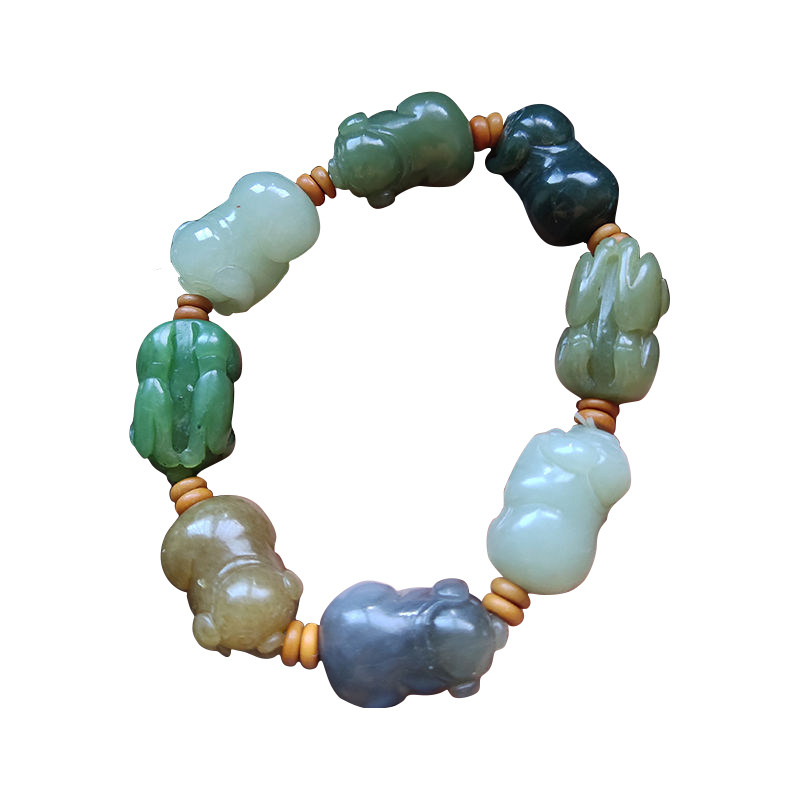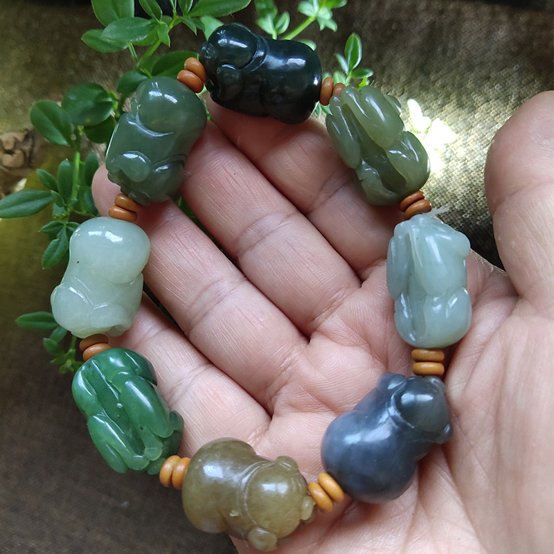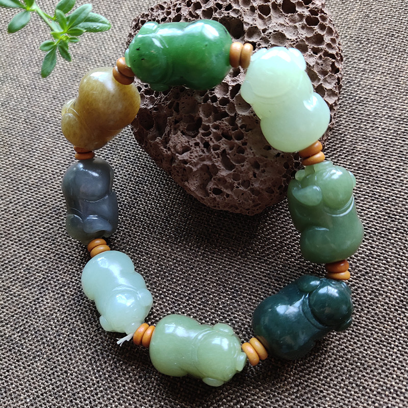 Xinjiang Hetian jade hand chisel men's Babao antique jade natural bracelet old-fashioned beads hand-held pearl ethnic style identification