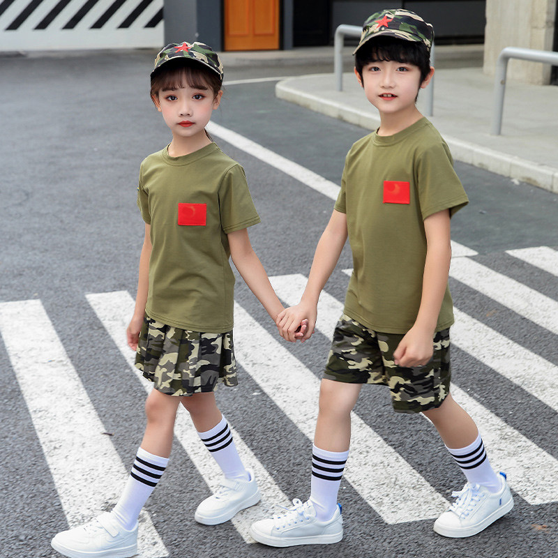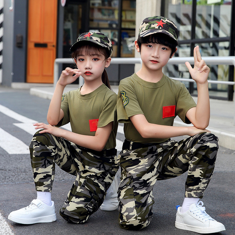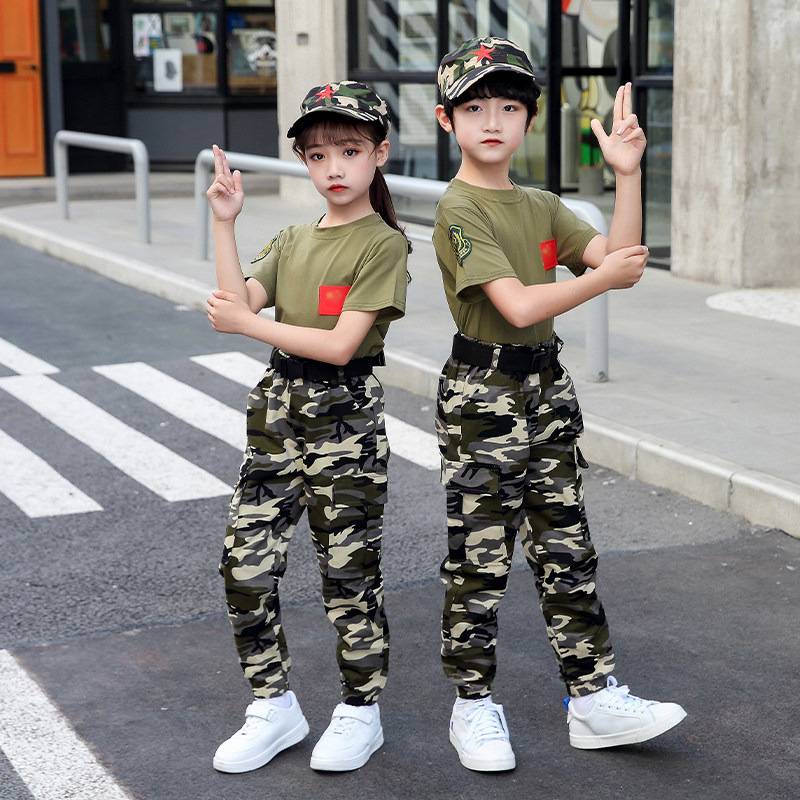 Children's camouflage suit primary and secondary school students military training uniform summer clothes boys short-sleeved June 1 costume special forces costume