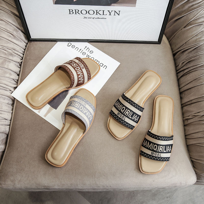 Korean version of the net red girl flying knitted knitted princess slippers women's summer outer wear flat beach shoes women's summer 2022 new