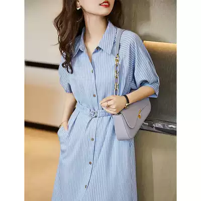 FENPERATE temperament commuter striped shirt dress women's 2021 summer new loose belt mid-length skirt