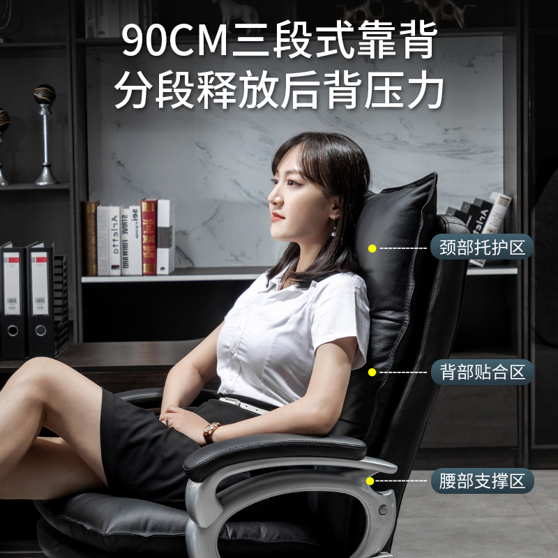Genuine leather owner chair Lying Office Chair Comfort Long Sitting Computer Chair Home Big Class Chair Seat Massage Chair Bookroom