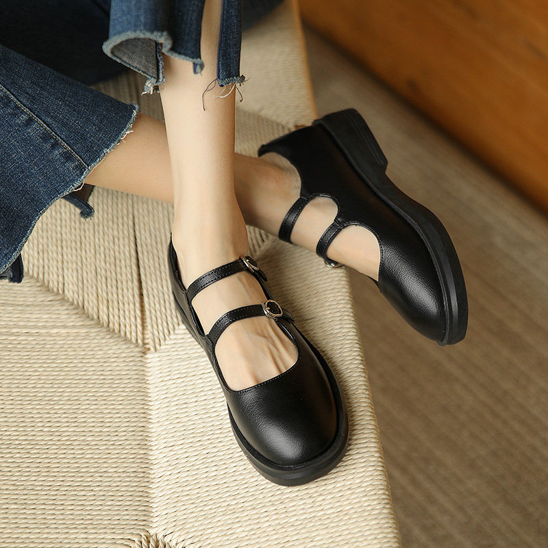 Inlen Wind Small Leather Shoes Women Summer Jk Thin 2021 new Lefoe shoes thick bottom lined with Mary Jane shoes women's single shoes