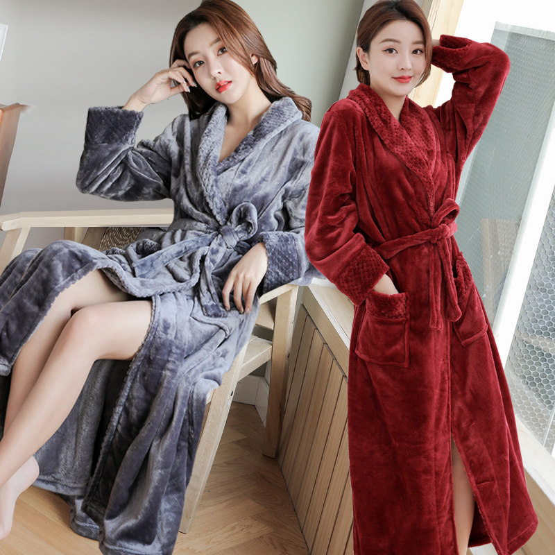 Bathrobe men's autumn winter long version of coral suede plus suede thickened pyjamas lovers'flannel pyjamas ladies' winter home clothes