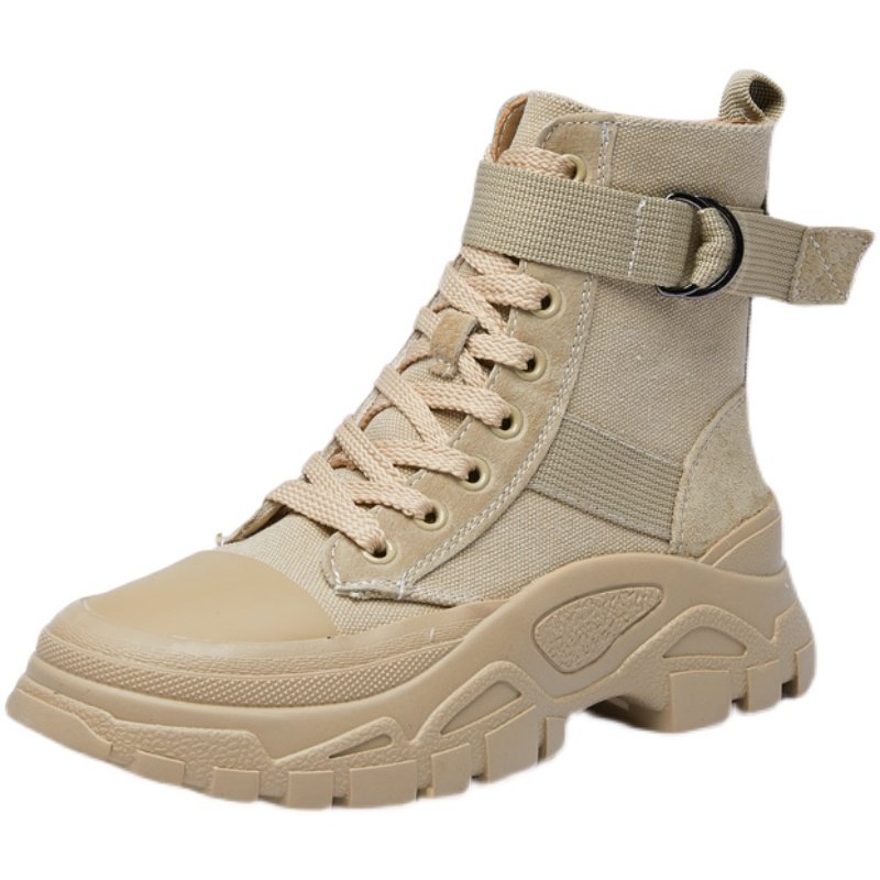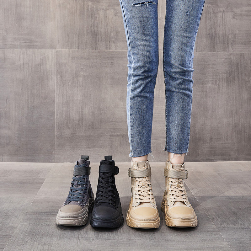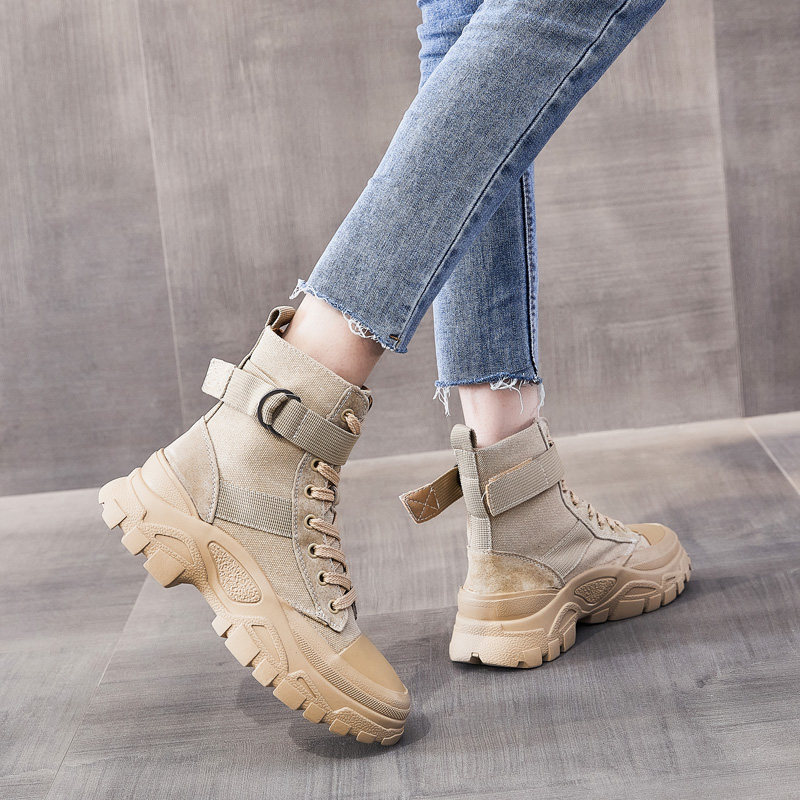 Martin boots 2022 new female autumn and winter increase high and tall small canvas high - gang thick yellow boots shoes thin