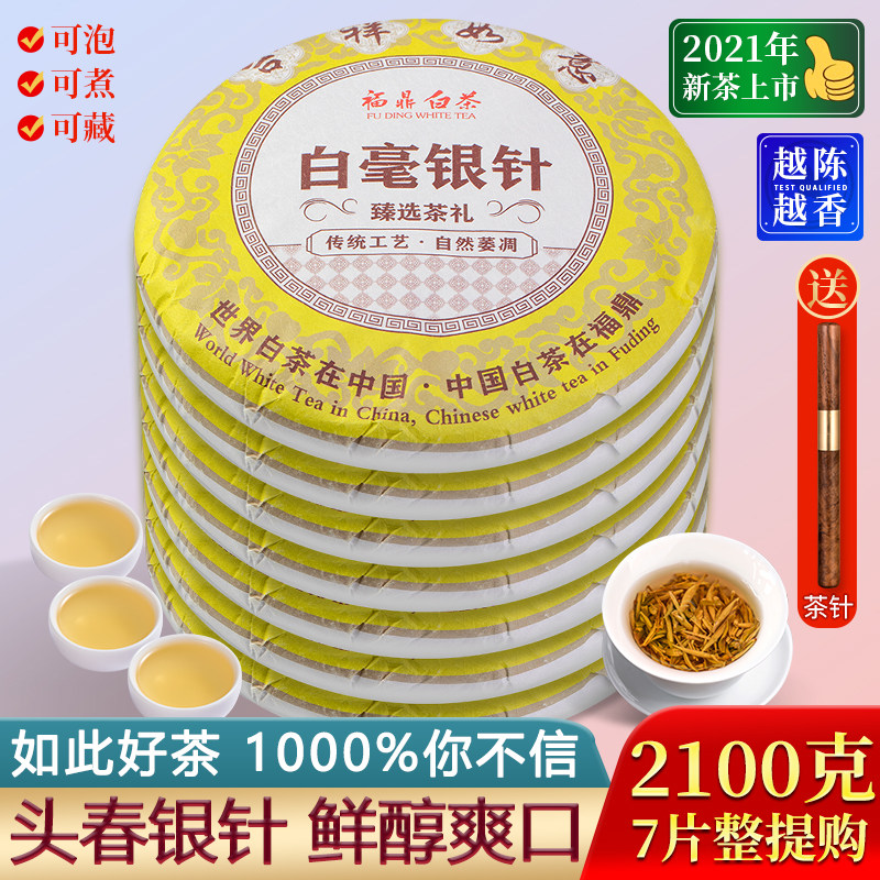 2021 Authentic Fuding White Tea Cake Head Picked Pekoe Silver Needle Tea Head Spring Buds 7 Pieces Whole Purchasing Total 2100g