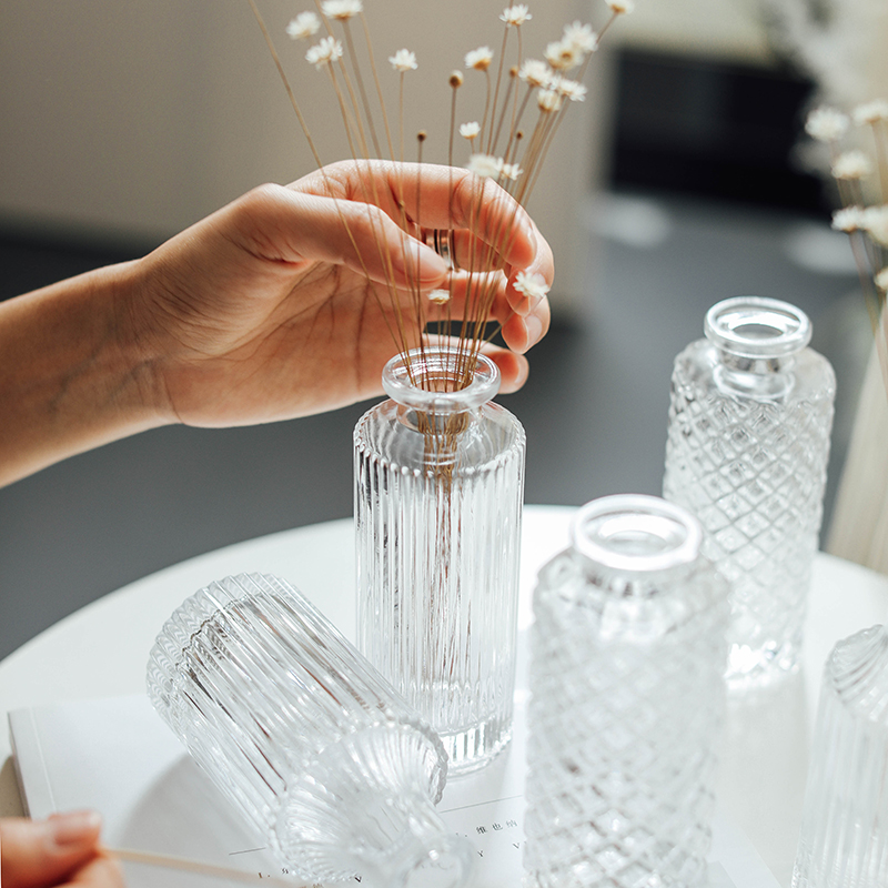 Fan-style small vase Mini transparent glass small caliber flower arrangement Water Pepe office Desktop Cute Pendulum Madrid
