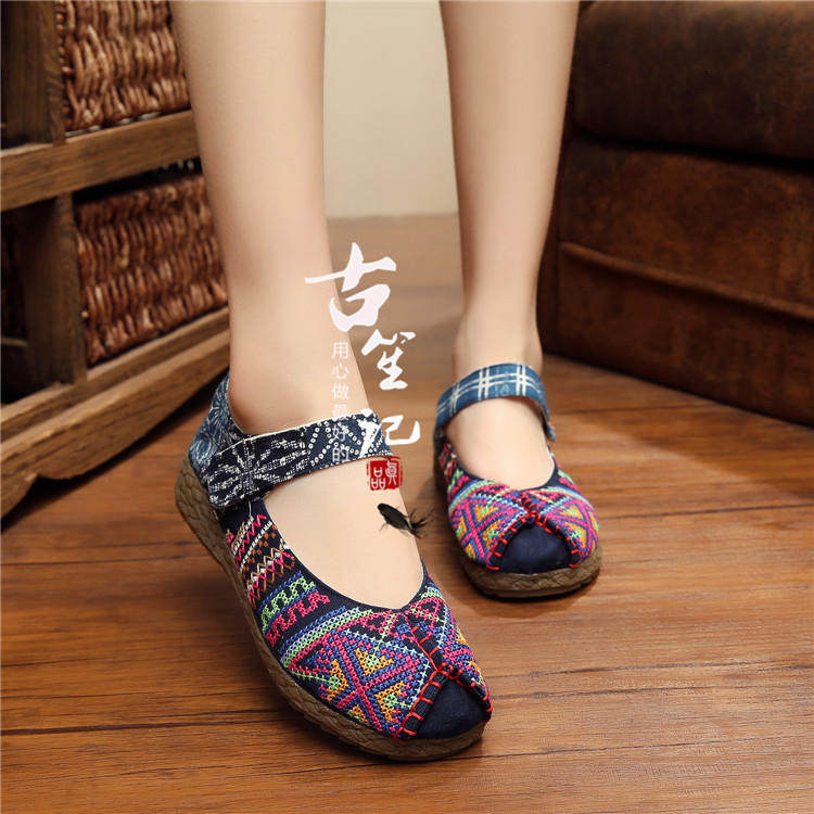 Yunnan ethnic style linen shoes women's grass sole shoes retro linen shoes cotton hemp tendon bottom ethnic style embroidered women's shoes