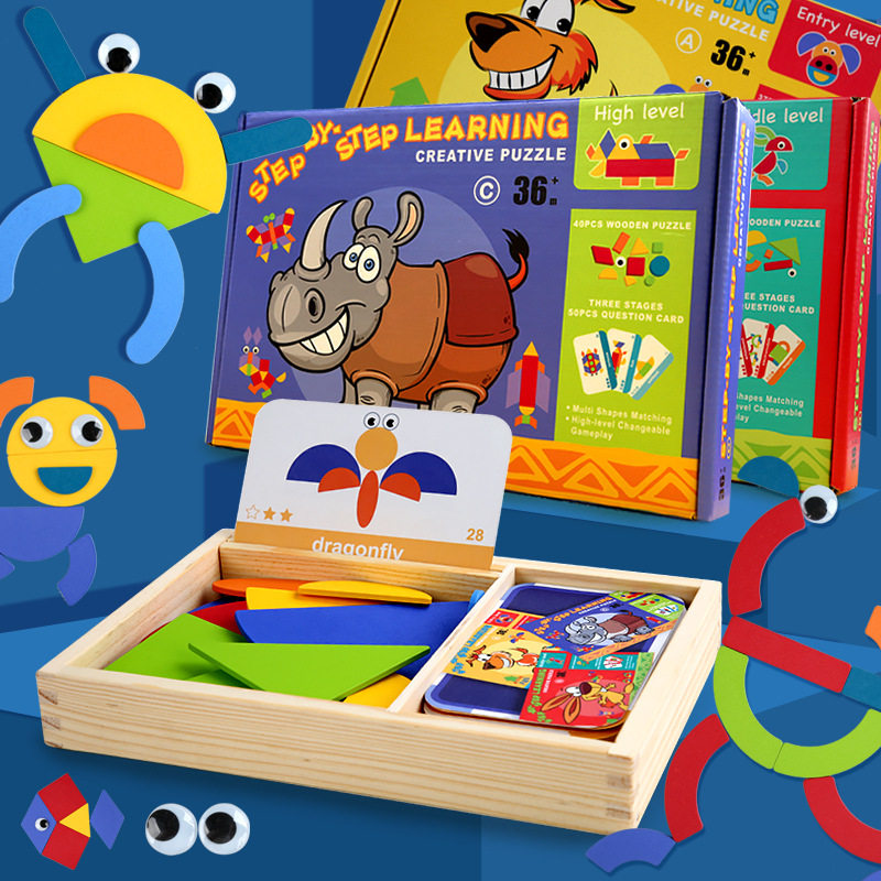 Meng's Kindergarten Early Education Center Creative Puzzle Jigsaw Puzzle Baby Puzzle Development Enlightenment Building Blocks Wooden Toys