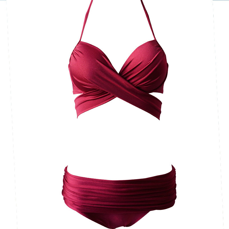 Split Bikini Swimsuit Women Summer Sexy High Waist Hanging Neck Three-Point Style Small Breasts For Swimsuit 2023 New Exploits-Taobao
