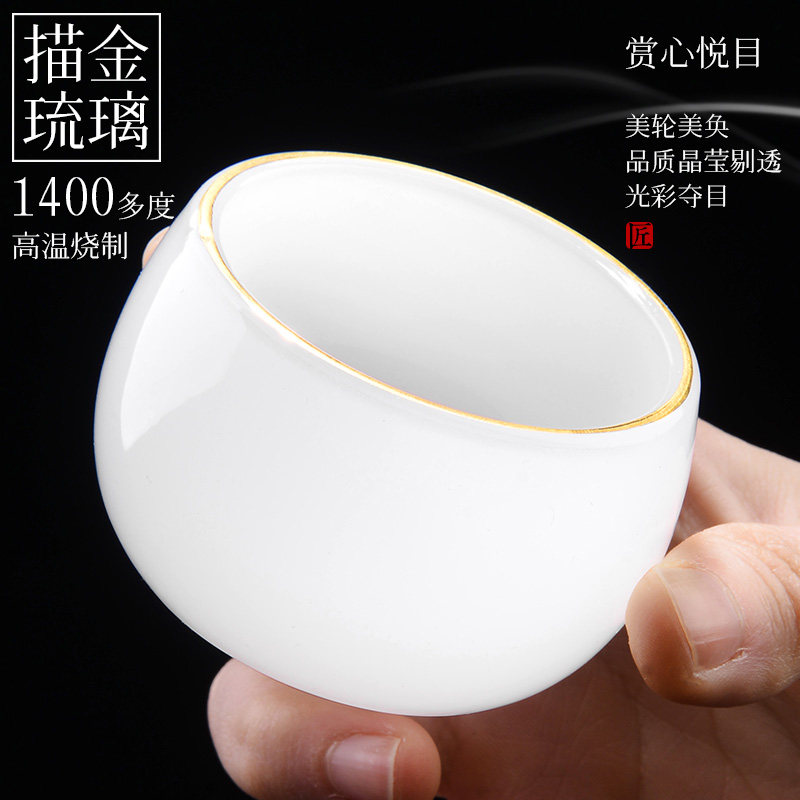 White jade glass fragrant cup Glass tea drain 10 into-gift box (gold section)White Jade glass fragrant cup 8 into-Gift box (gold section)White Jade glass fragrant cup Glass tea drain 10 into-gift box