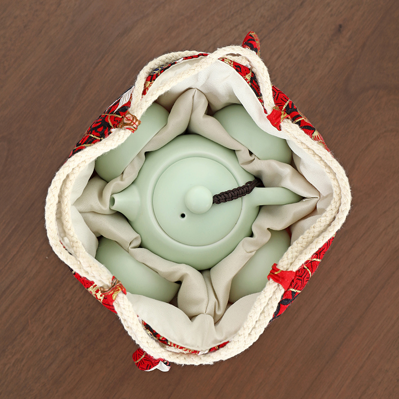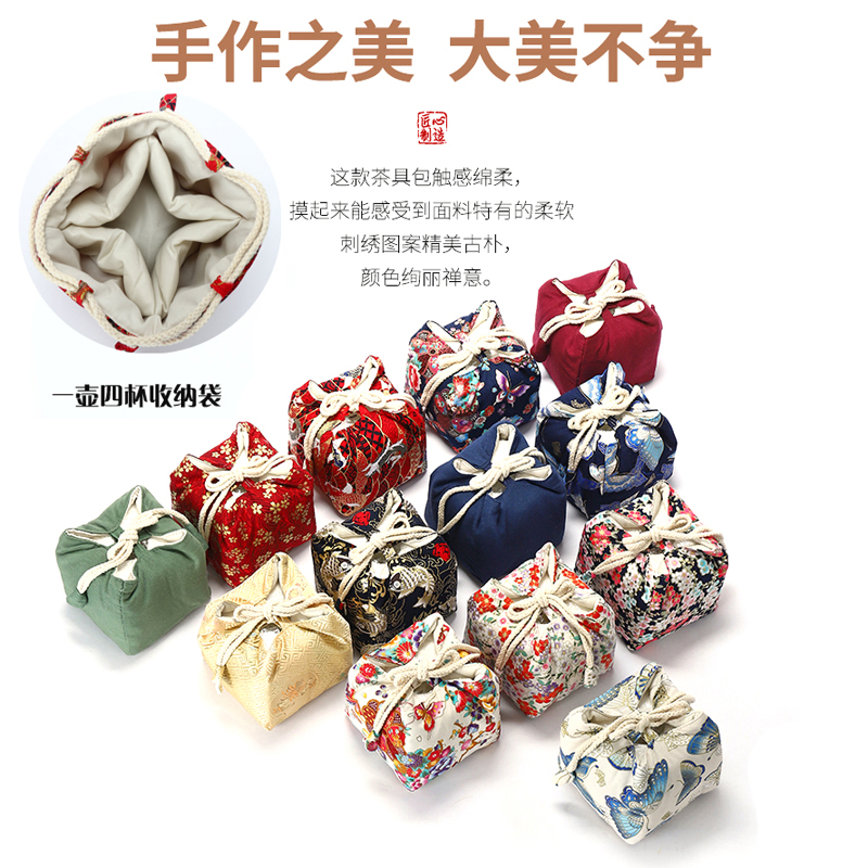 One pot four cup storage bag dark green (excluding tea set One pot four cup storage bag navy blue (excluding tea set one pot four cup storage bag dark red (excluding tea set one pot four cup storage bag Four Seasons flower (excluding tea set)