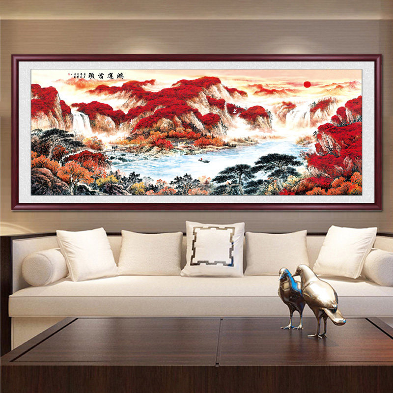 Chinese painting landscape painting background wall new Chinese style central hall living room hanging painting office decoration landscape mural lucky head