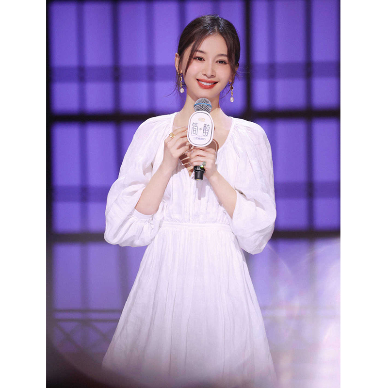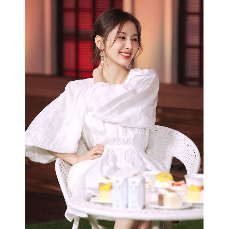 Prince Wen's first love V - taught white skirt 2023 - summer young man high waist A - word dress woman