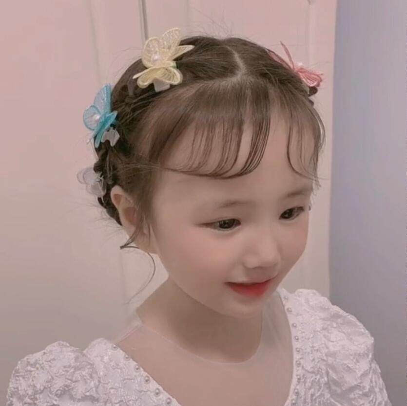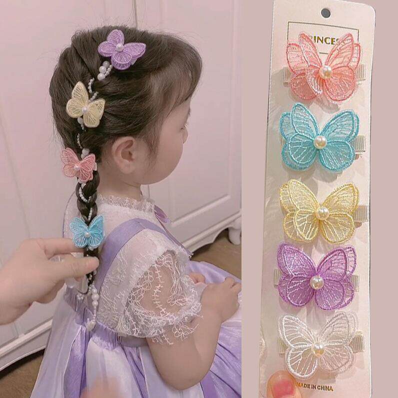 Children's version of Yang Chaoyue's same pearl butterfly hair accessories super fairy embroidery double butterfly hair clip pearl braided hair chain clip
