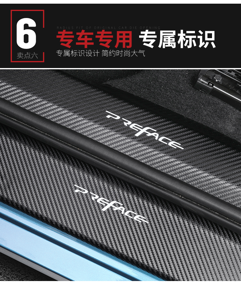 Inner and outer door sill strips a full set of 8 external door sill strips a set of 4 built-in door sill strips a set of 4 trunk guards Inner and outer full set of 2 trunk guards Only 1 outer trunk guard Only 1 inner