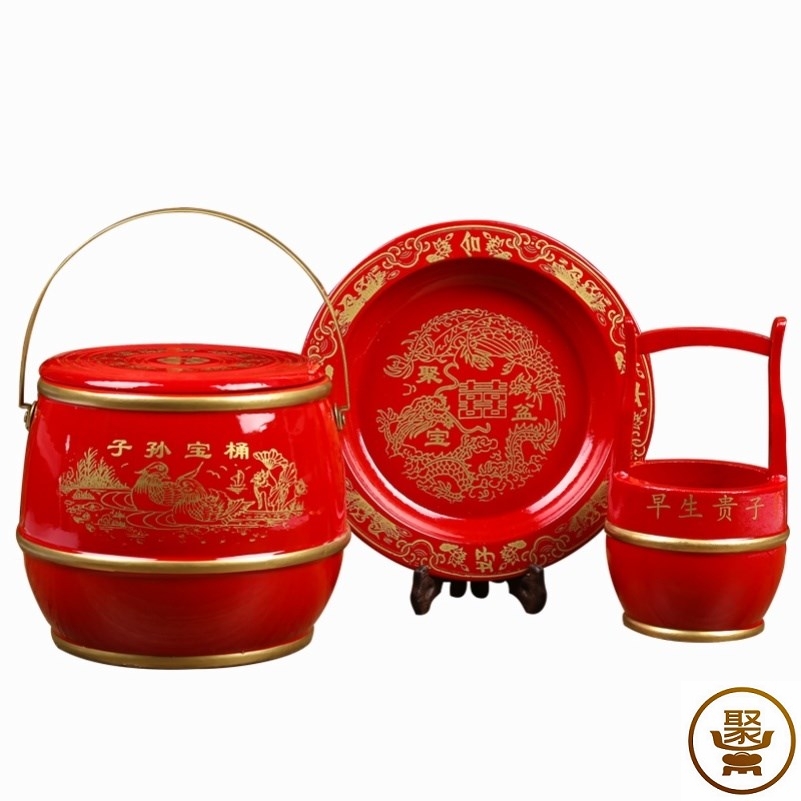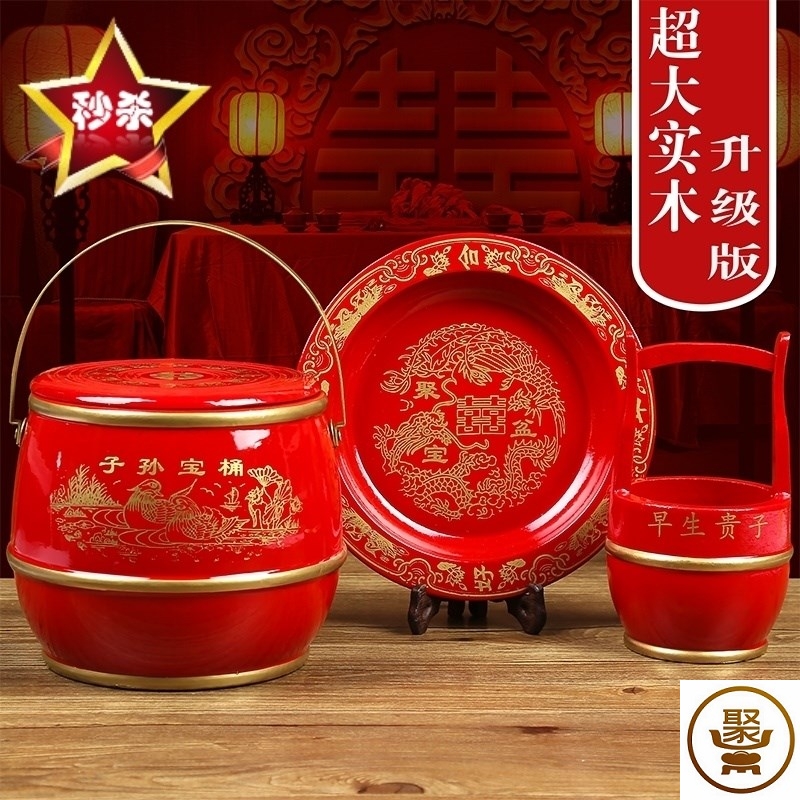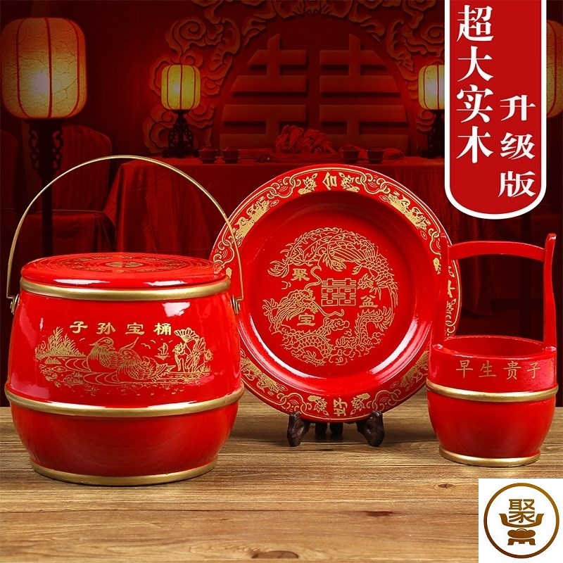 Red Lacquer Big toilet wedding wedding children and grandchildren barrel wooden toilet real wood barrel bride accompanied by dowry Chinese single barrel wood barrel-Taobao