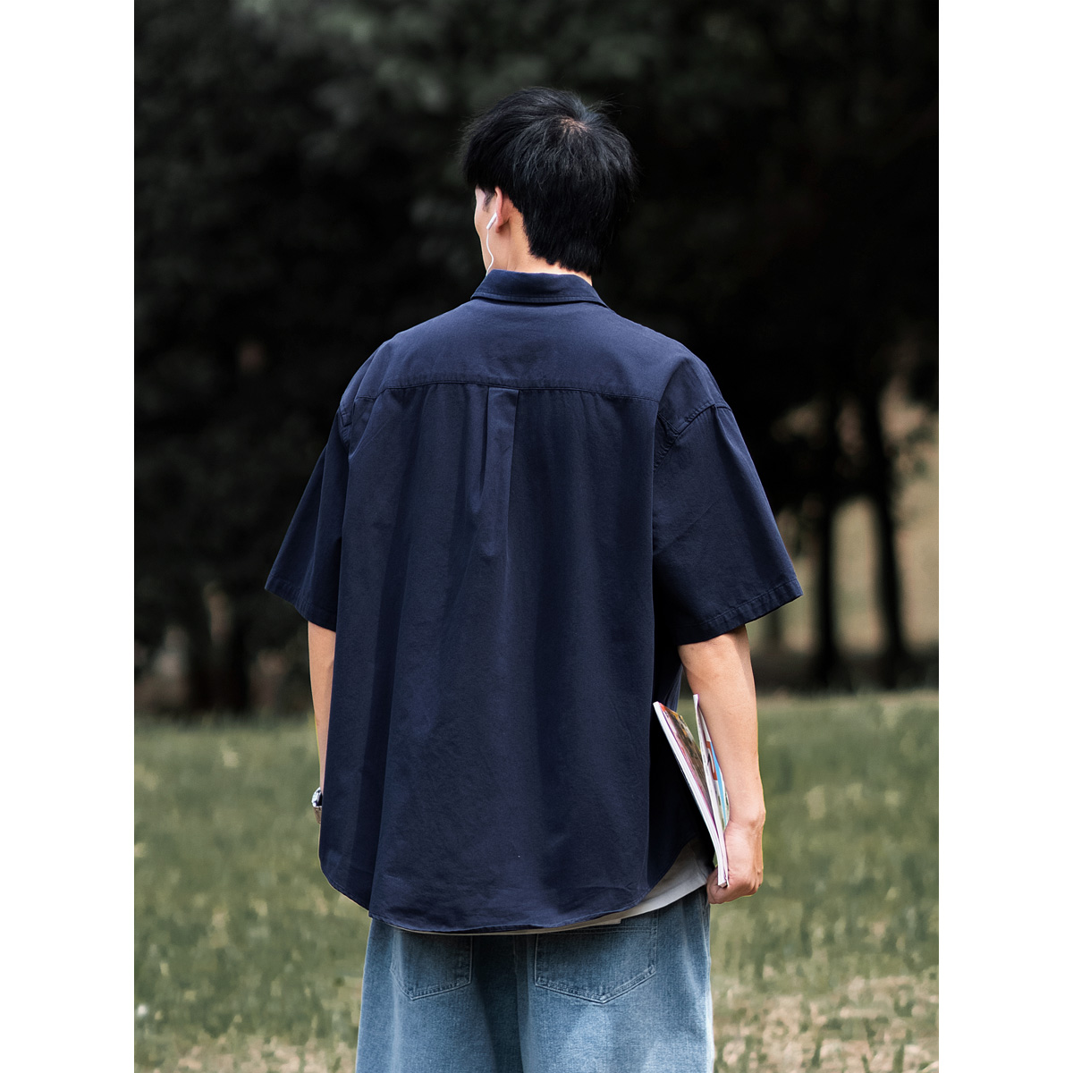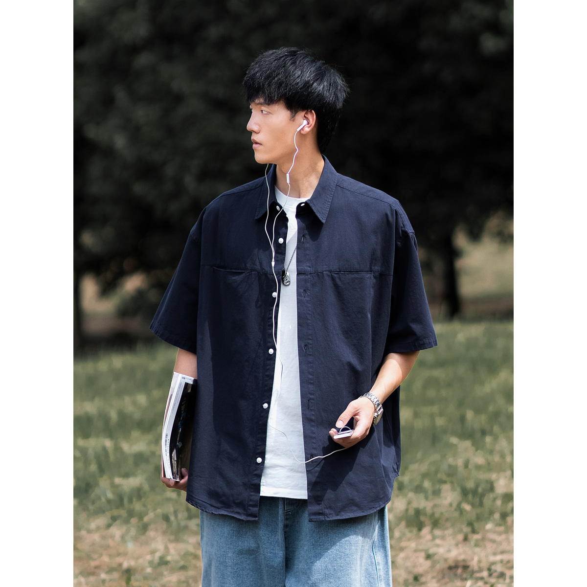 BDLS Japanese cityboy solid color stacked short-sleeved shirt men's summer new loose casual pointed collar shirt men