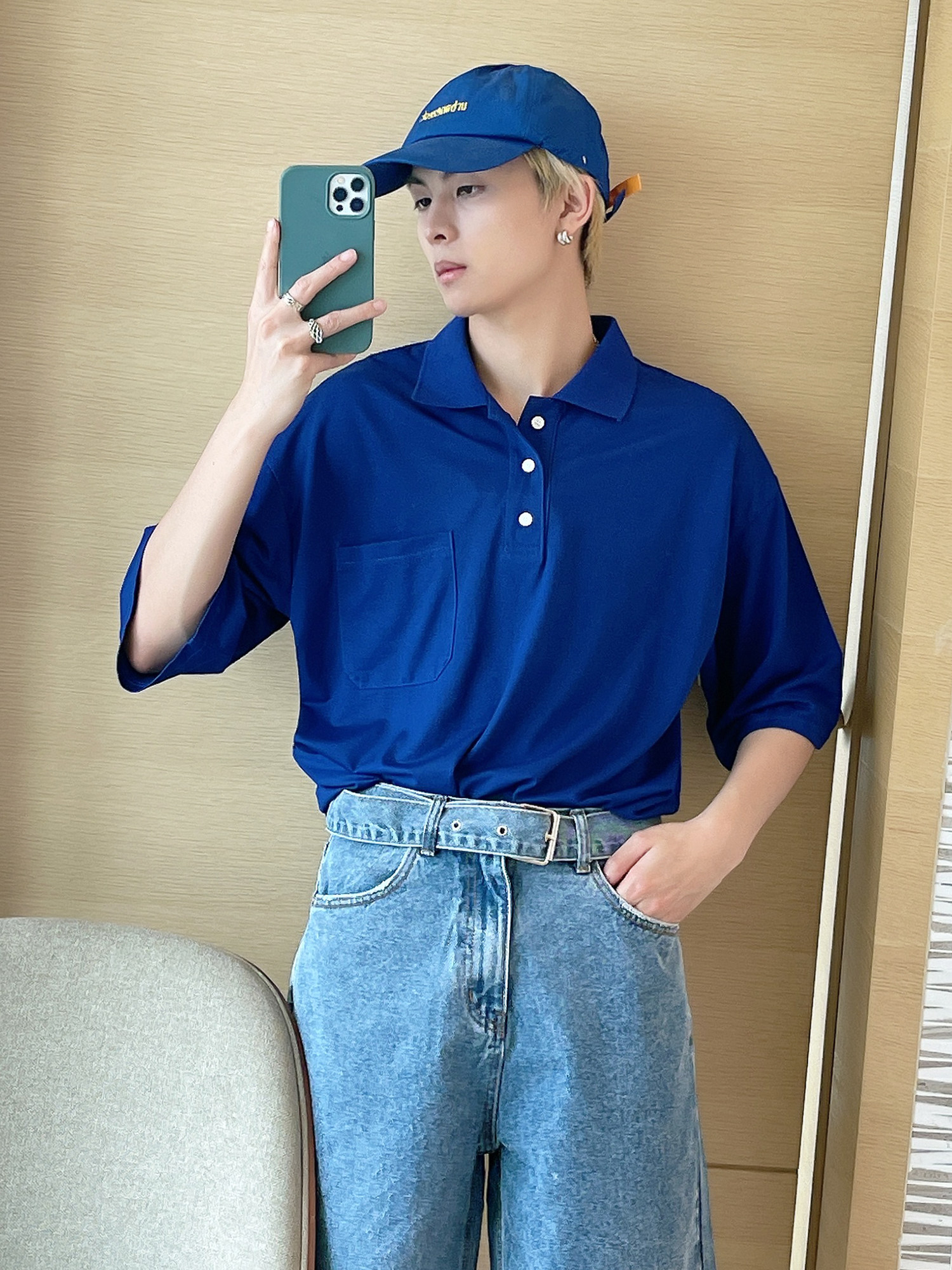 CCJE Qingshuang Ice Silk 50% sleeves Summer Korean version Trend oversize casual polo shirt T-shirt man 2022