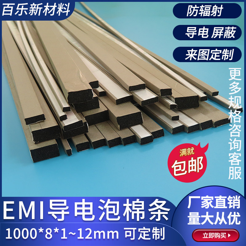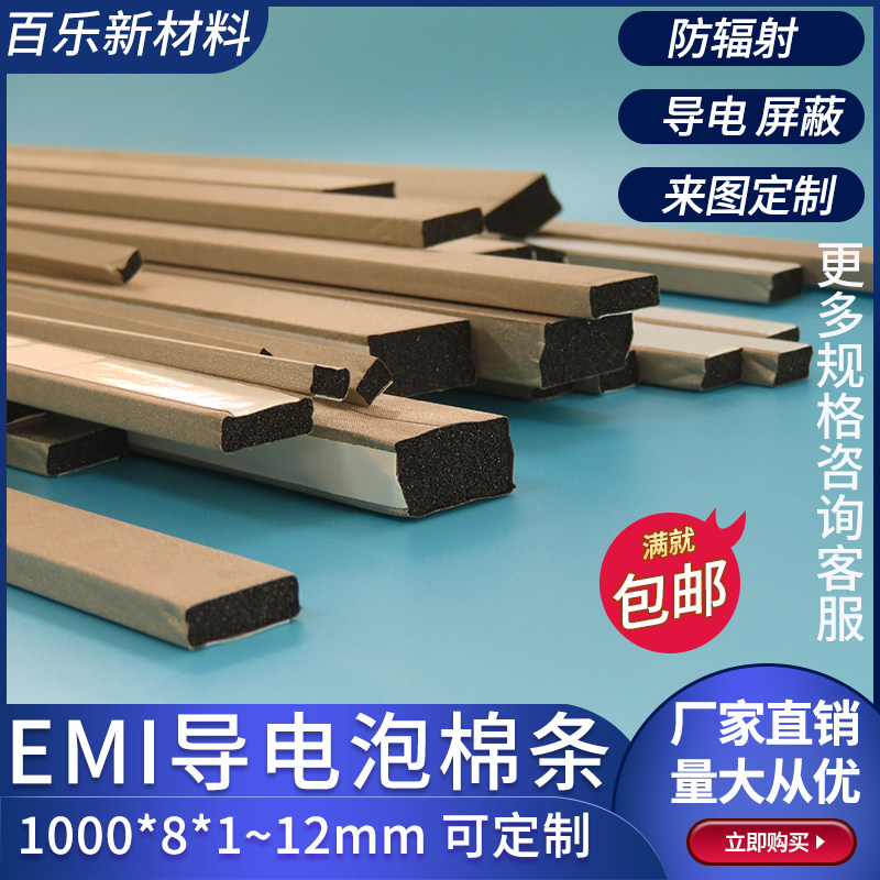 Conductive foam sliver 1000*8*1~12mm anti-static compression shielding anti-interference sponge single-sided back glue customized