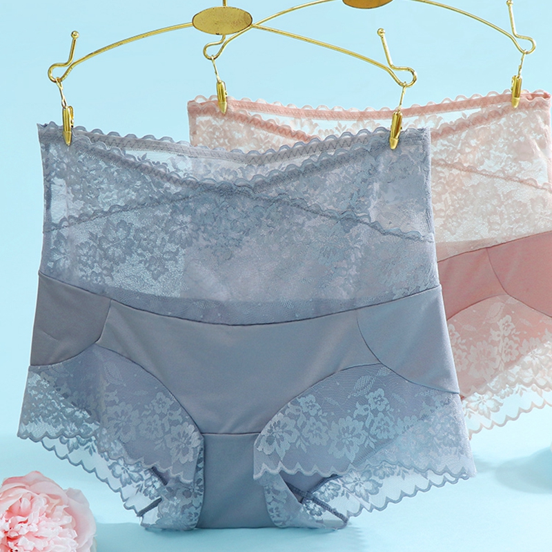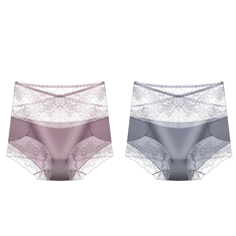 Japanese ice silk tummy control underwear women's high waist lace pure cotton crotch close small belly strong butt lifting pants comfortable summer thin