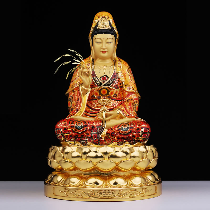Color-painted Bed Three Holy Buddha Statues at the mercy of brass Coliath gold worshipping home Guanyin BodhisattBodhisattBodhisattva The Buddha is buried with the Buddha's Buddha.