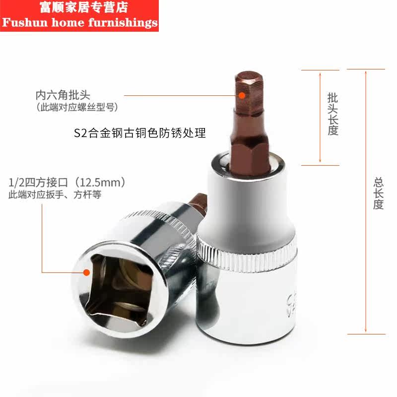 Inner Hexagon Sleeve Head Suit Combined Screwdriver S2 lengthened 1 2 Electric inner 6 angular screwup sleeve screwdriver head wrench