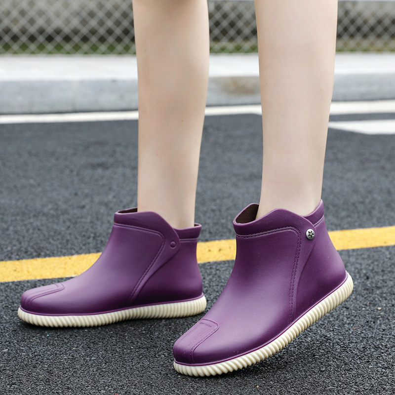 Rain boots women's summer fashion outerwear rubber shoes Japanese purple water boots comfortable non-slip rain boots short tube waterproof shoes women