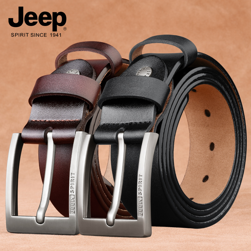 Jeep leather belt men's leather pin buckle belt men's Korean version of the trendy pants belt pure casual wild middle-aged and young