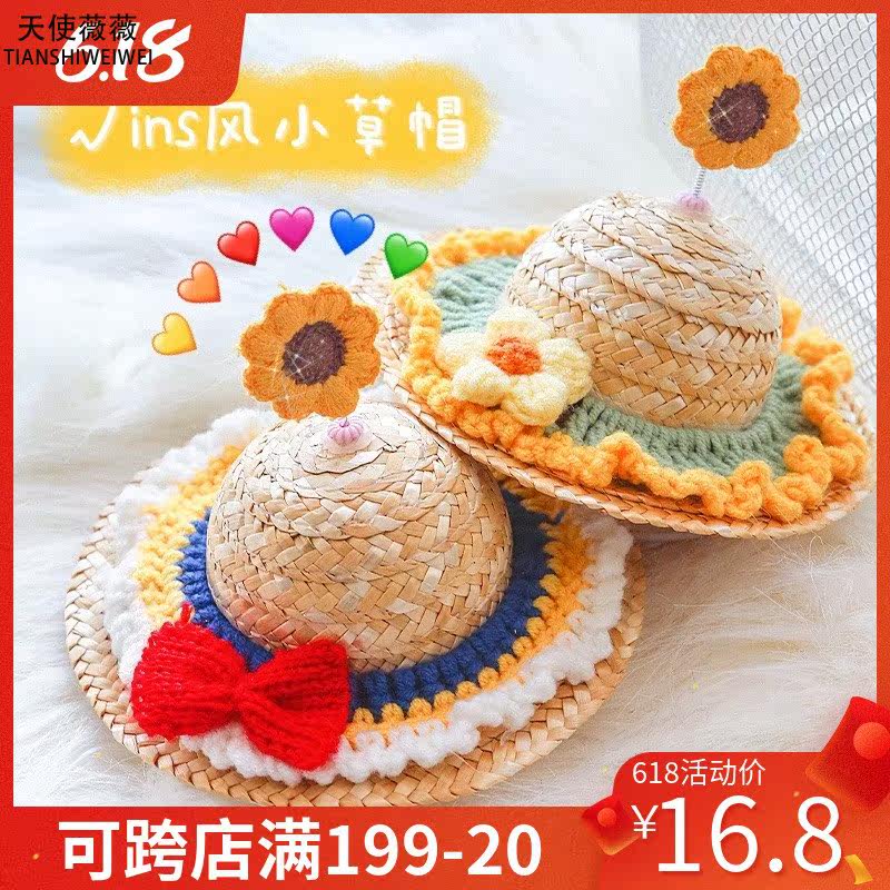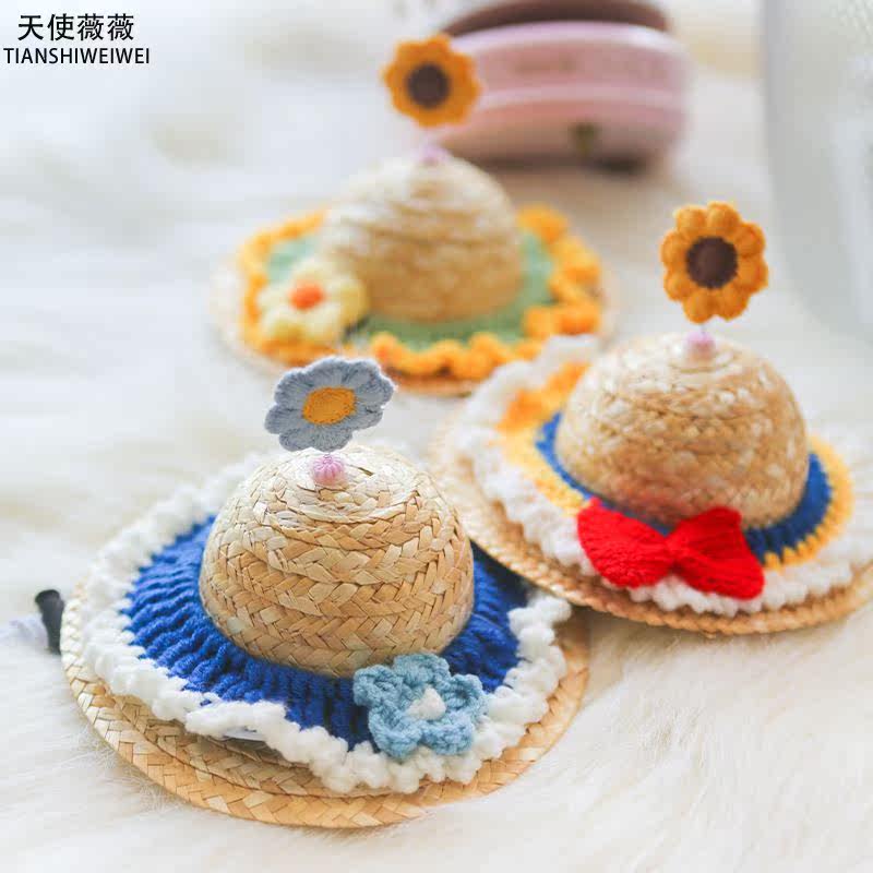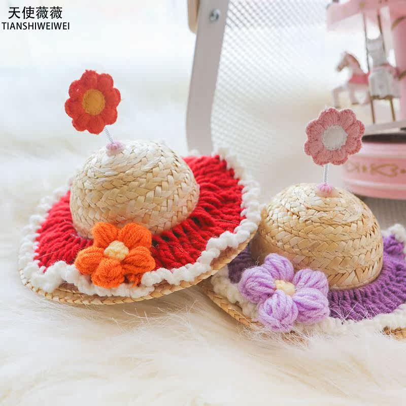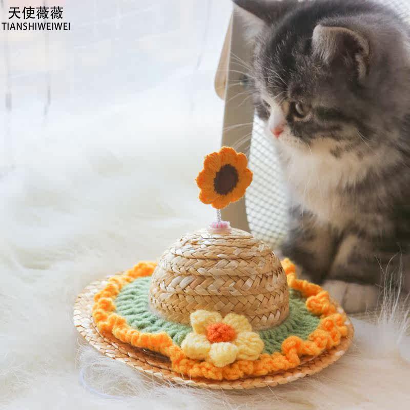 Pets Summer Cute Knit Small Grass Hat Flowers Hats Kitty Dogs Ins Wind Photo Props
