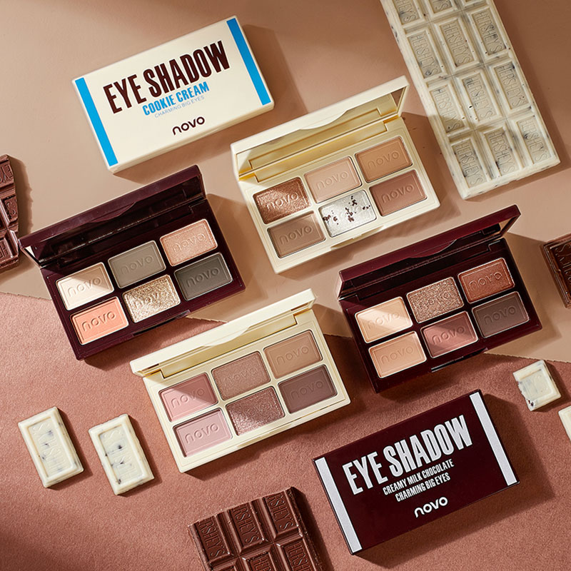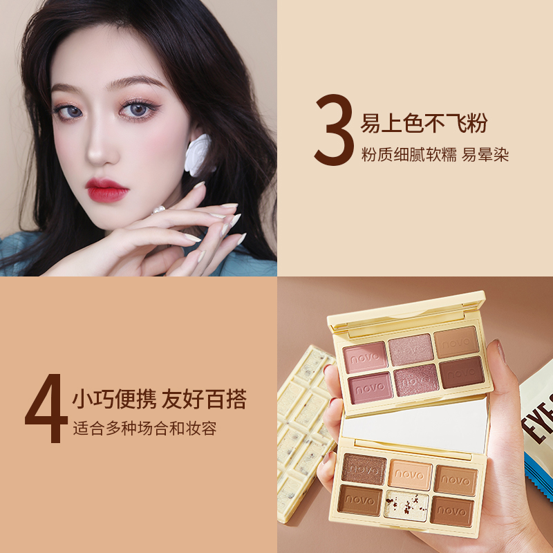 novo chocolate silk sliding eye shadow pan six color eye shadow matte pearly stun student earth brown easy to color not fly pink