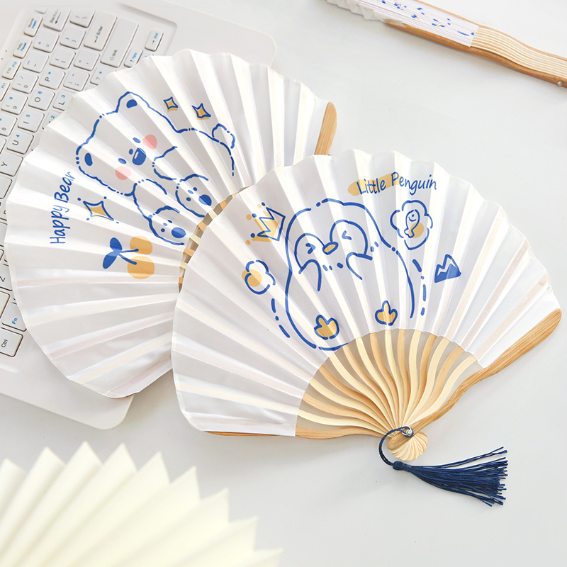 Cute Little Fan Milk Cute Rabbit Cartoon Creativity Small Bear Folding Fan Summer Portable folding with a cloth surface streaming Su Mission fan