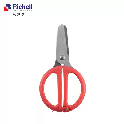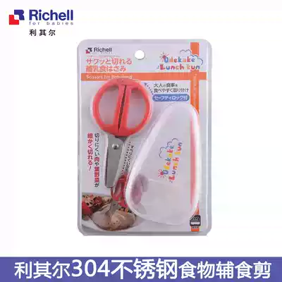 Japan Richell Lichel children stainless steel non-staple food scissors baby with storage box portable grinding artifact