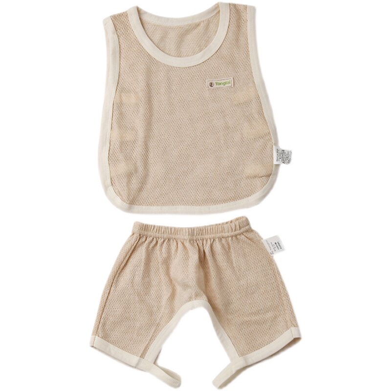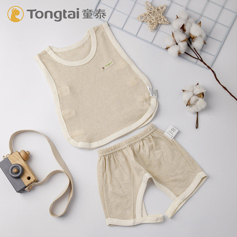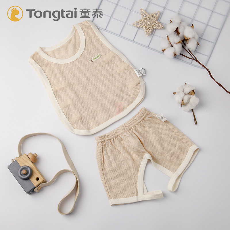 Tongtai baby summer pipa clothing suit male and female baby pure cotton sleeveless vest open crotch shorts thin two-piece set