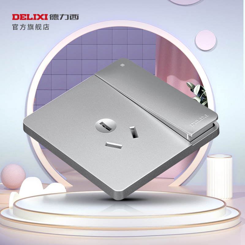 Delixi opened three - hole 16A air conditioning socket switch 86 type household dark power supply large panel glow silver