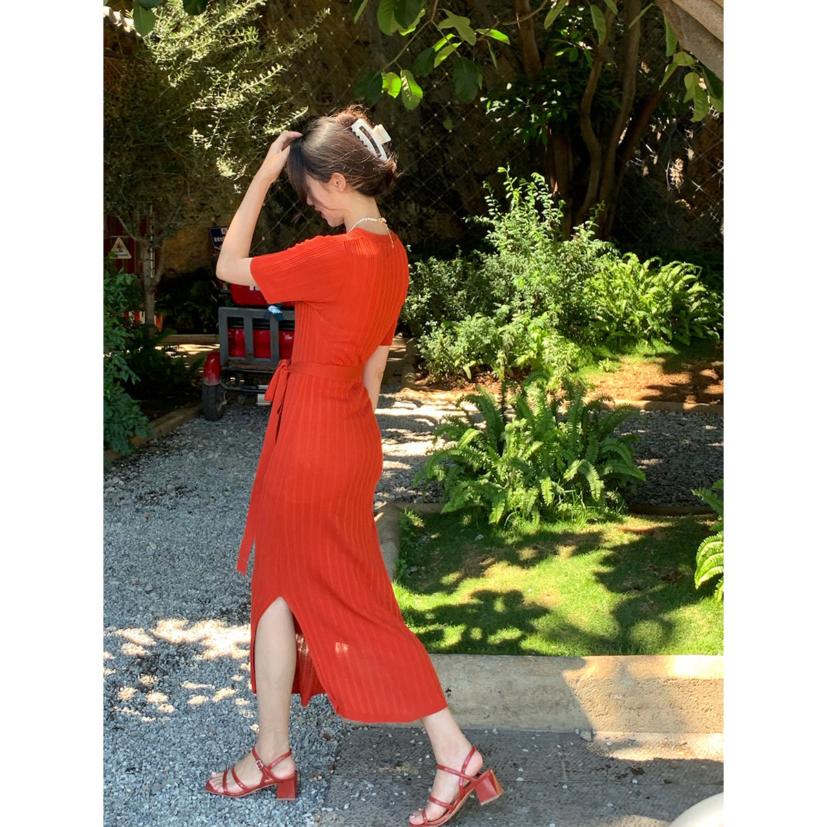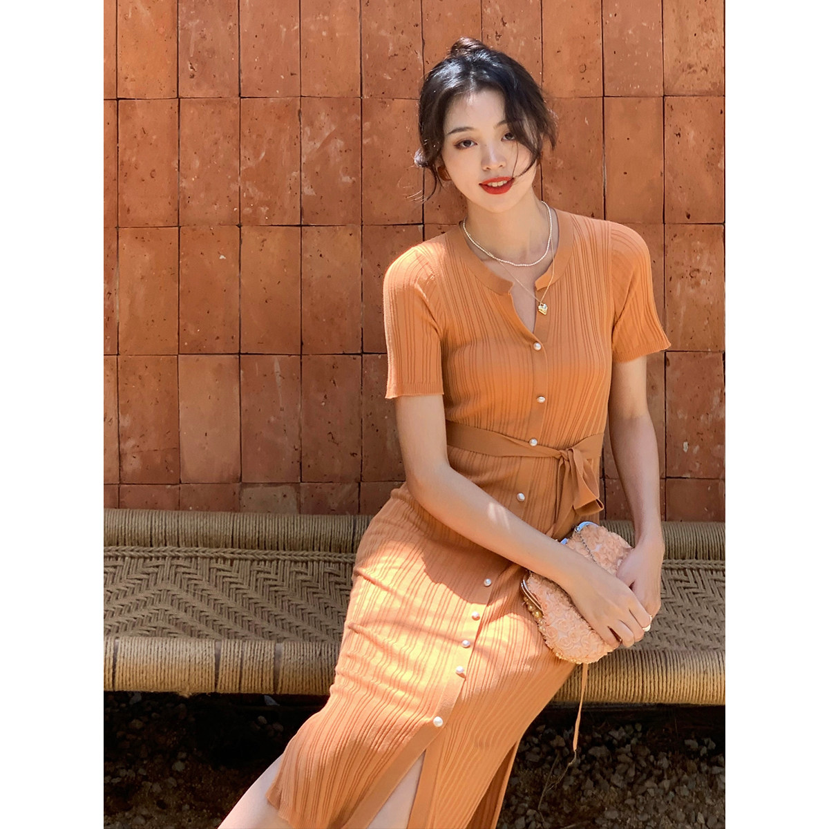 SYT high face value design original knit open and open women's summer 2021 Body Slim Middle Long Dress