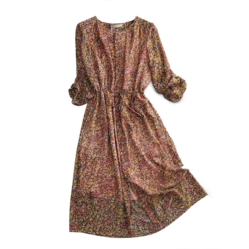 JOVKATTI light luxury age reduction print tie waist thin midi skirt high waist temperament shirt dress