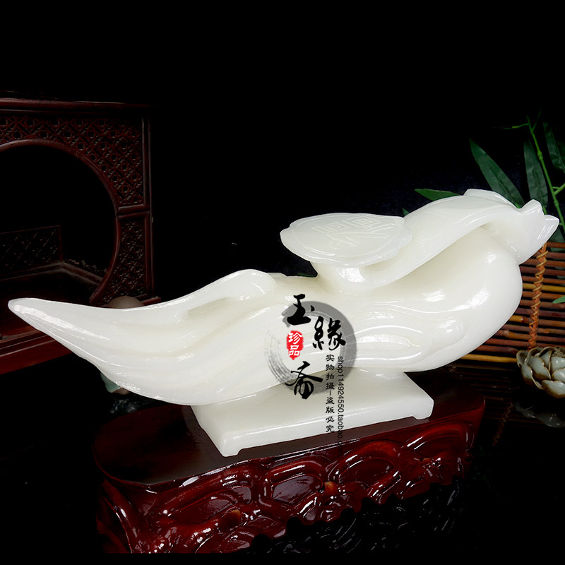 Natural white jade ginseng Ruyi swaying piece Living room Xuanguan office Adornment Jo to open a gift