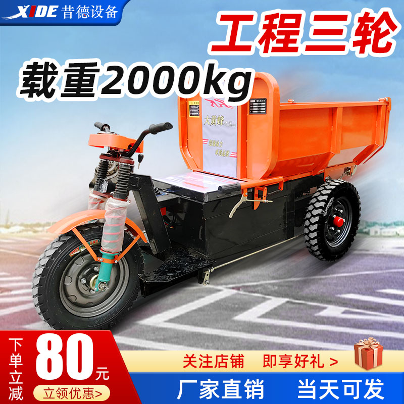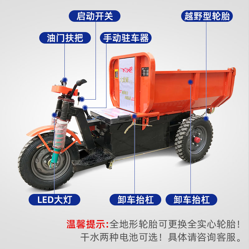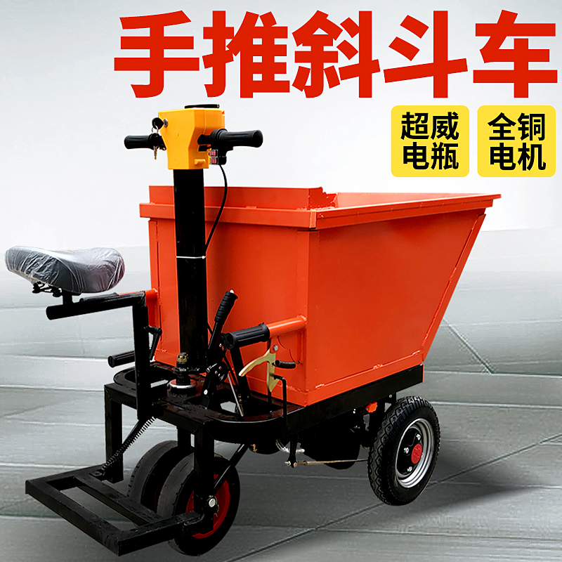 Construction site electric ash bucket car three-wheeled push carrying car pull mortar cement construction breeding tipping bucket pull brick flatbed truck